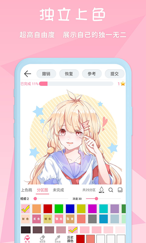 3.制作精美的二次元壁纸涂色应用,操作简单,小白用户都可以创作自己喜欢的壁纸。