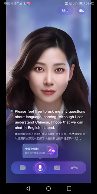 3、如果用户熟悉教程内容后就可以跳过进入正式使用环节,使用时点击按钮与虚拟人对话即可