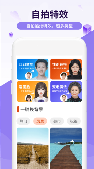 3.软件拥有强大的照片处理能力,一键回到童年,性别转换,变老魔法,更换背景。